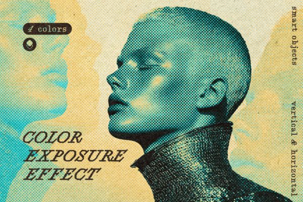 迷幻酸性失真故障赛博朋克风照片图像修图特效PS样机模板素材 Motion Photo Effect with Acid Colors